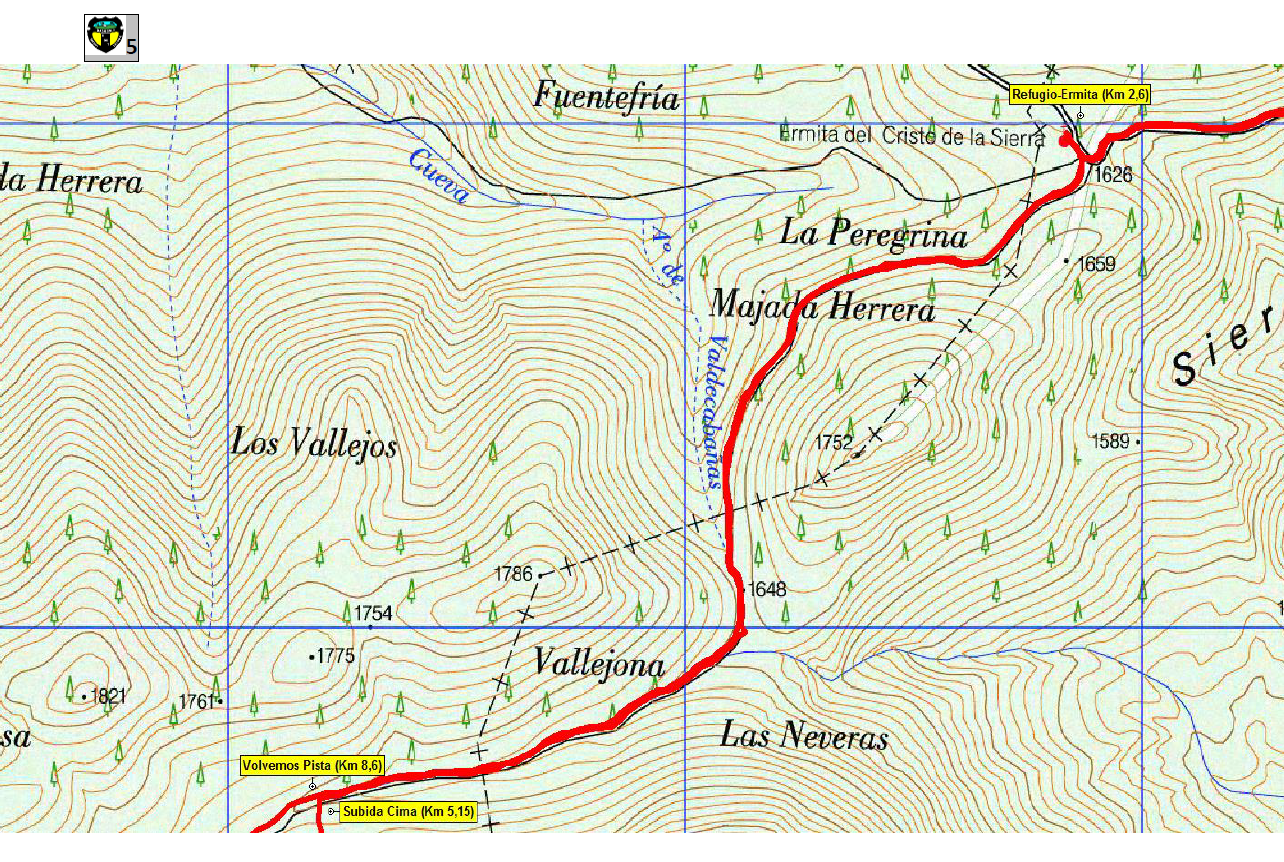 Para acceder a la cima debemos remontar una cuesta a IZQUIERDA, bastante empinada y con continuas revueltas. En lo alto tenemos una gran cruz metálica de unos 14 metros, una estructura de piedra y el VÉRTICE GEODÉSICO 1.996 MT (Km 6,8).Para volver descendemos nuevamente al collado y nos dirigimos dirección NORESTE hacia los Hoyones del Hijo de Yebaro.